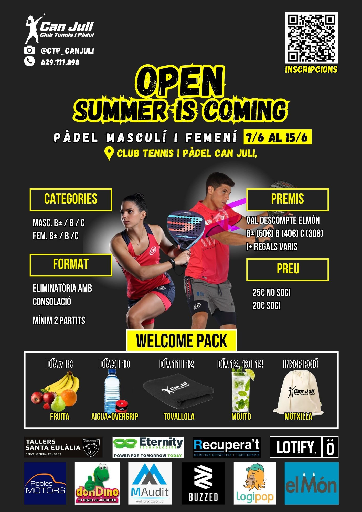 Organización de eventos deportivos de tenis y pádel en las instalaciones de CTP Can Juli.