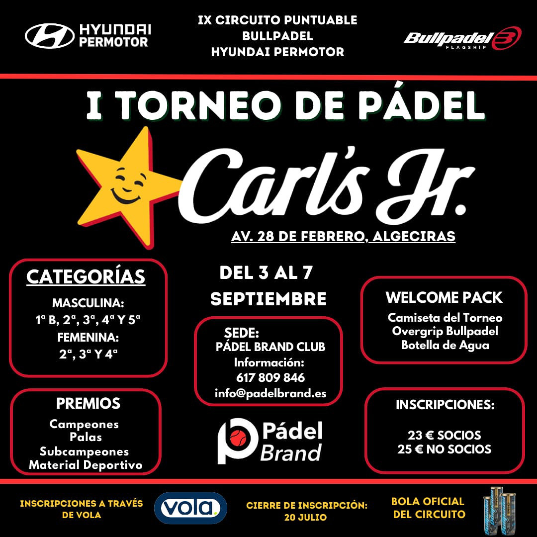I TORNEO DE PÁDEL CARL´S JR - 7ª PRUEBA PUNTUABLE CIRCUITO BULLPADEL HYUNDA - Vola